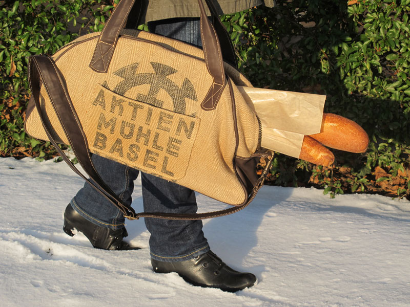 Entwicklung einer Tasche aus Original-Mehlsäcken für die Aktienmühle Basel.